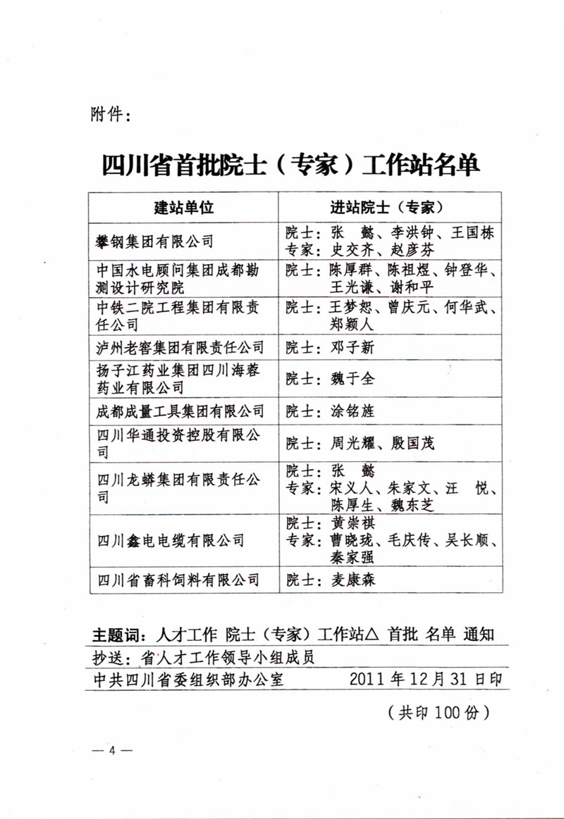 四川省院士(專家)工作站